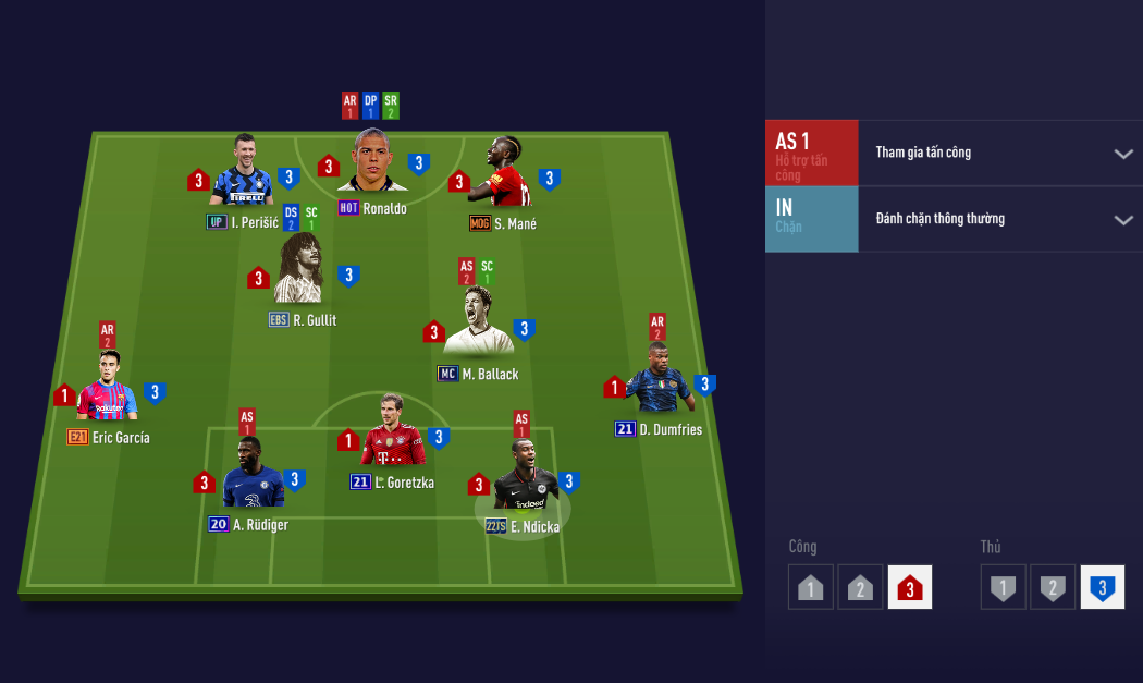 Bộ 3 trung vệ là Rudiger, Petit và Desaily, riêng Petit NHD dù đã lỗi thời nhưng mức thẻ +9 thì chắc chắn là không thể coi thường, với sever Việt Nam thì bạn có thể thay thế bằng nhiều cái tên khác cũng được, hoặc mùa giải khác của huyền thoại người Pháp.