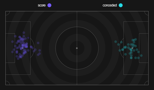 ✔ Cự ly ghi bàn trung bình : 15,5m