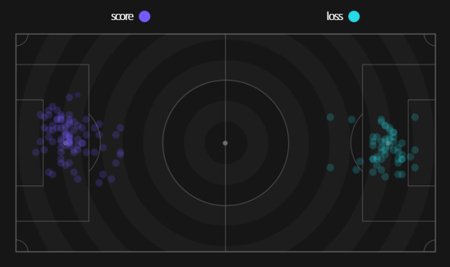 ✔ Cự ly ghi bàn trung bình : 16,6m