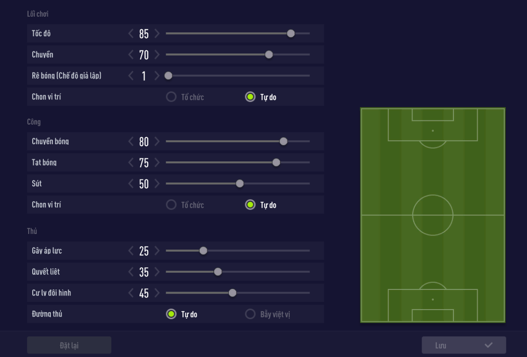 Chiến thuật đơn tương đối đơn giản dành cho team Man City, hai hậu vệ cánh được thiết lập cho phép tấn công, thậm chí lên công về thủ liên tục, điều này sẽ giúp ích cho việc dồn ép đối thủ của bạn, nhưng nó cũng sẽ là con dao hai lưỡi nếu đối phương có những bài phản công nhanh và có trong đội hình như cầu thủ có tốc độ kiểu Torres, Ronaldo thì việc để hai cánh dâng cao là tương đối mạo hiểm. Bạn nên lựa rau gắp mắm tùy trận đấu cho phù hợp.