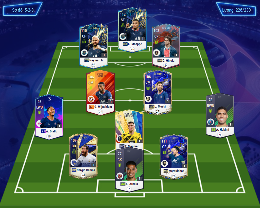 Sơ đồ 523 đang được nhiều game thủ lựa chọn ở meta hiện tại, và rõ ràng PSG cũng hoàn toàn có thể áp dụng sơ đồ này một cách thoải mái.