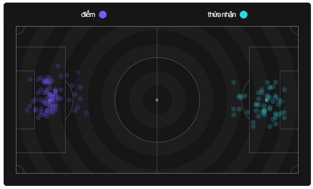 ✔ Cự ly ghi bàn trung bình 15,5m ( trong vòng cấm )