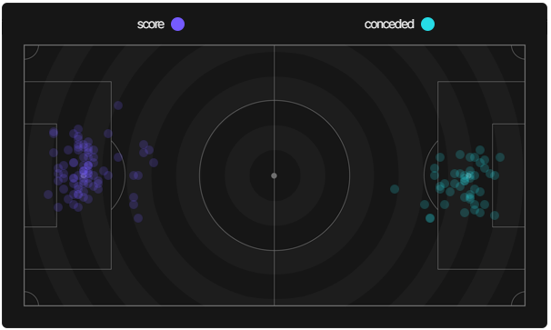 ✔ Cự ly ghi bàn trung bình : 15,9%