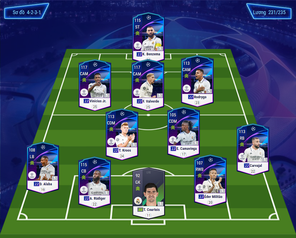 Chiến thuật đơn minh họa của team Real Madrid 22UCL