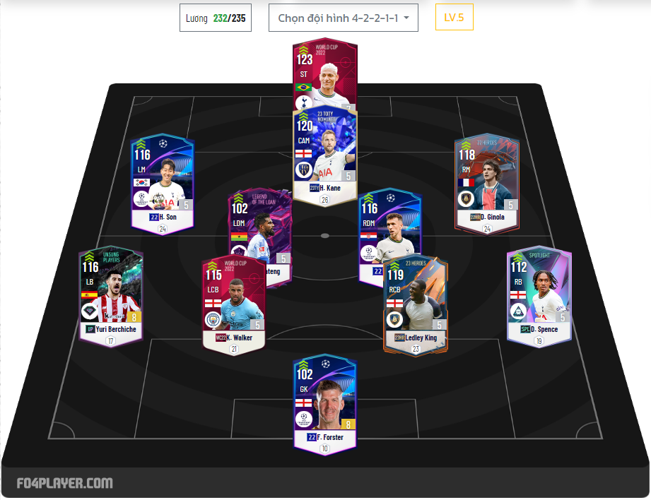 Tuy nhiên việc bản quyền cầu thủ không phải do Nexon quyết định mà là do EA - một công ty bên Mỹ nắm giữ. Tottenham vẫn còn nhiều vấn đề trong đội hình mà các HLV trong Fo4 khá đau đầu như vị trí tiền vệ phòng ngự chẳng hạn. Dưới đây là một team Tottenham được một HLV Hàn Quốc sử dụng để leo rank siêu sao, các bạn có thể tham khảo qua.