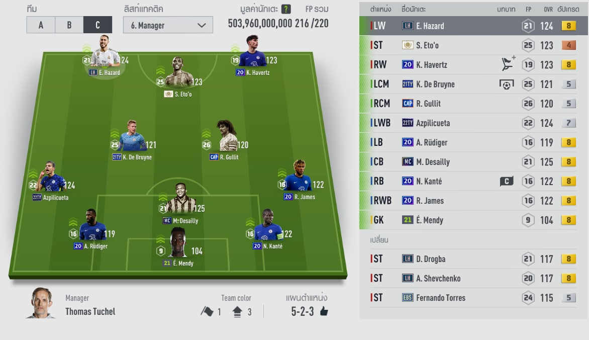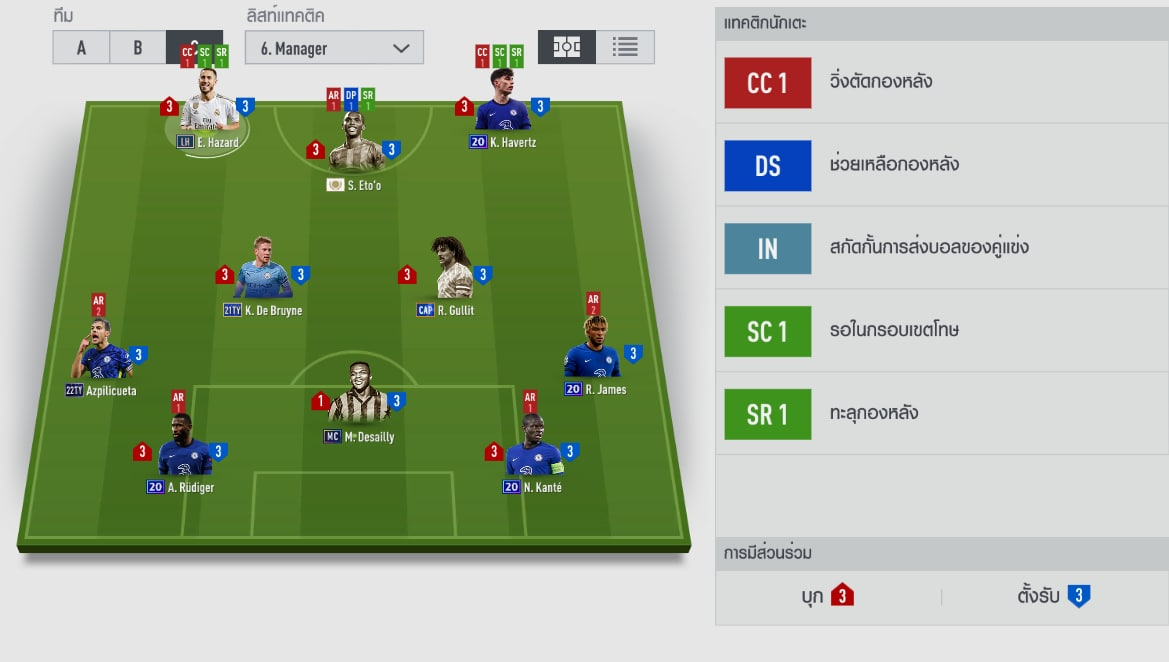 Về nhân sự của team Chelsea trên hình, riêng thẻ + của cầu thủ đã nói lên độ uy tín của đội hình này rồi. Khi mà các vị trí ở hàng thủ đều là những mùa giải có AI rất tốt. Kante tuy thấp bé nhưng trong GLXH khi đưa về vị hậu vệ thì lại phát huy hết tố chất của máy quét này.