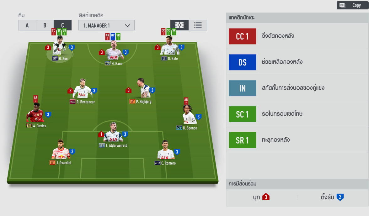 Như trên hình các bạn có thể thấy là HLV sở hữu đội hình trên đã thay thế nhưng nhân tố A. Davies và Gvardiol E21 vào đội hình để đảm bảo được yếu tố cân bằng. Davies là một cầu thủ đá GLXH cực chất khi vừa phòng ngự tốt vừa tấn công hay, thậm chí còn thường xuyên nghi bàn.