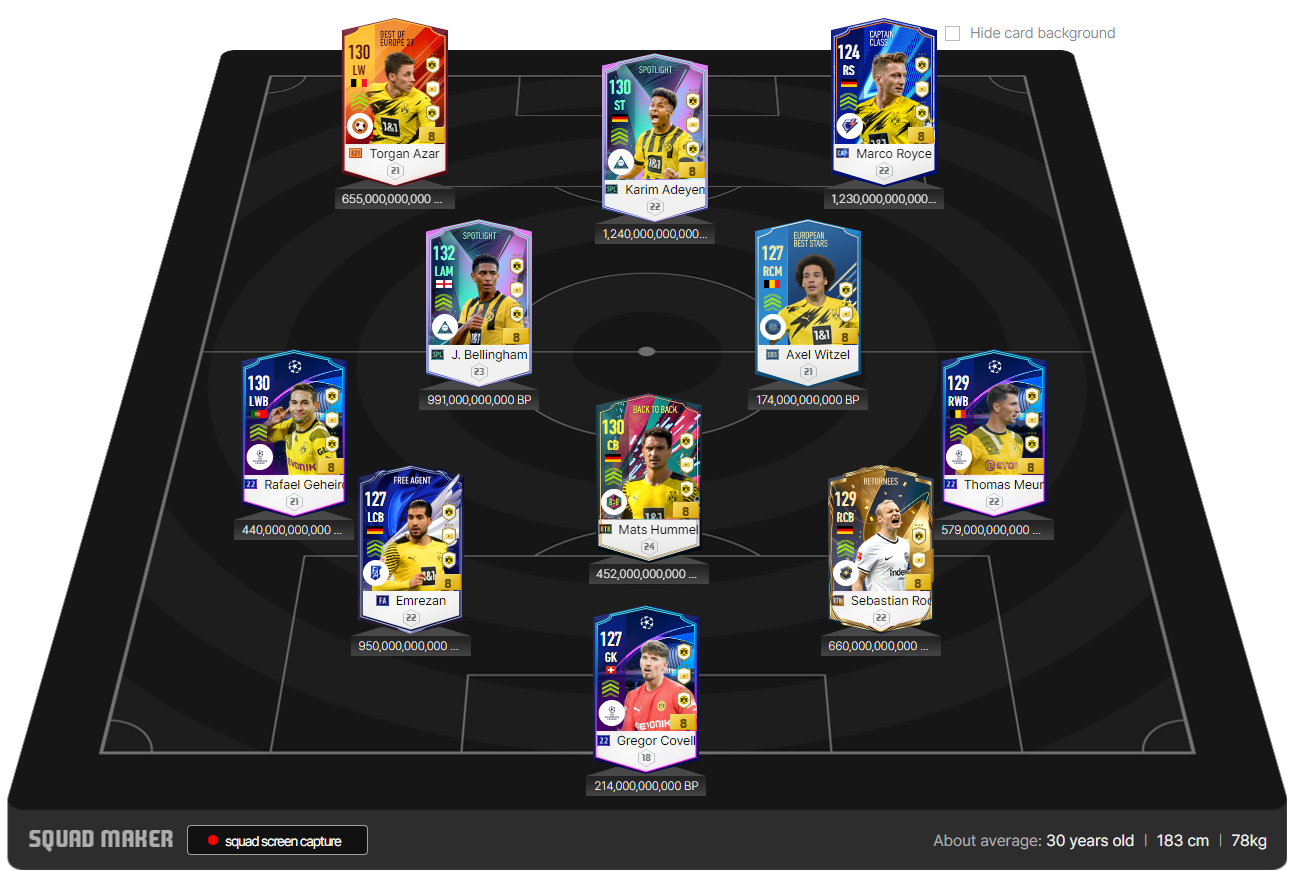 Đây là đội hình của Dortmund với gần như nững cái tên tốt nhất của họ ( trừ sự vắng mặt của Lewandowski ). Điểm dễ nhận biết nhất của đội hình này chính là cái tên Hummel, người chơi ở trung tâm của hàng phòng ngự, cầu thủ có chiều cao 1m91 này dường như đã tìm được đất diễn với chế độ GLXH mới. Khả năng cản phá đánh chặn là quá ư tuyệt vời. Trong khi đó hai cái tên được kéo xuống đá CB là Can và Rode không phải là những hậu vệ thuần thúy, đó là nhưng libero thì đúng hơn.