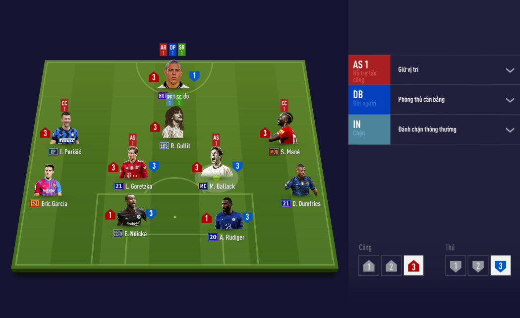 Như các bạn thấy trong sơ đồ này 4 cầu thủ phòng ngự đều có tuổi đời trong game khá lâu, từ thời điểm gameplay 7.0. Điều này phần nào ảnh hưởng đến chất lượng phòng thủ của Liverpool trong game. Nhưng nó có vẻ sẽ giống với một Liv ngoài đời hơn với tấn công là chủ đạo.