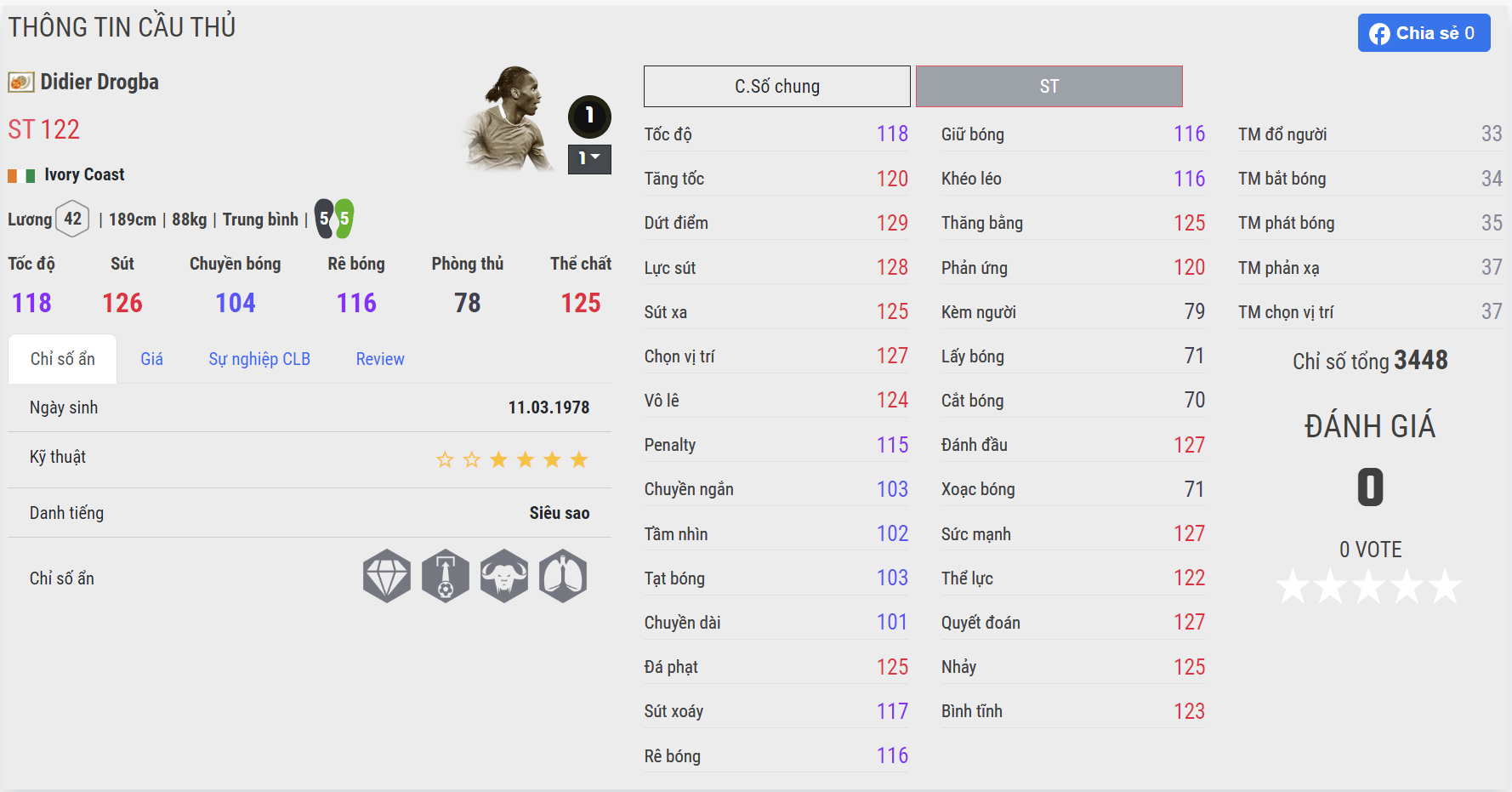Có thể thấy rõ top 1 không ai khác chính là Drogba ICON TM, voi rừng vốn là mẫu tiền đạo to khỏe, nhanh nhẹn, không chiến tốt, dứt điểm khét với lực căng. Và dường như ở phiên bản ICON TM mọi thứ đã được cải thiện rõ rệt trong game. Minh chứng là lượng người chơi trải nghiệm Drogba ICON TM vượt trội hơn hẳn so với các cầu thủ khác.
