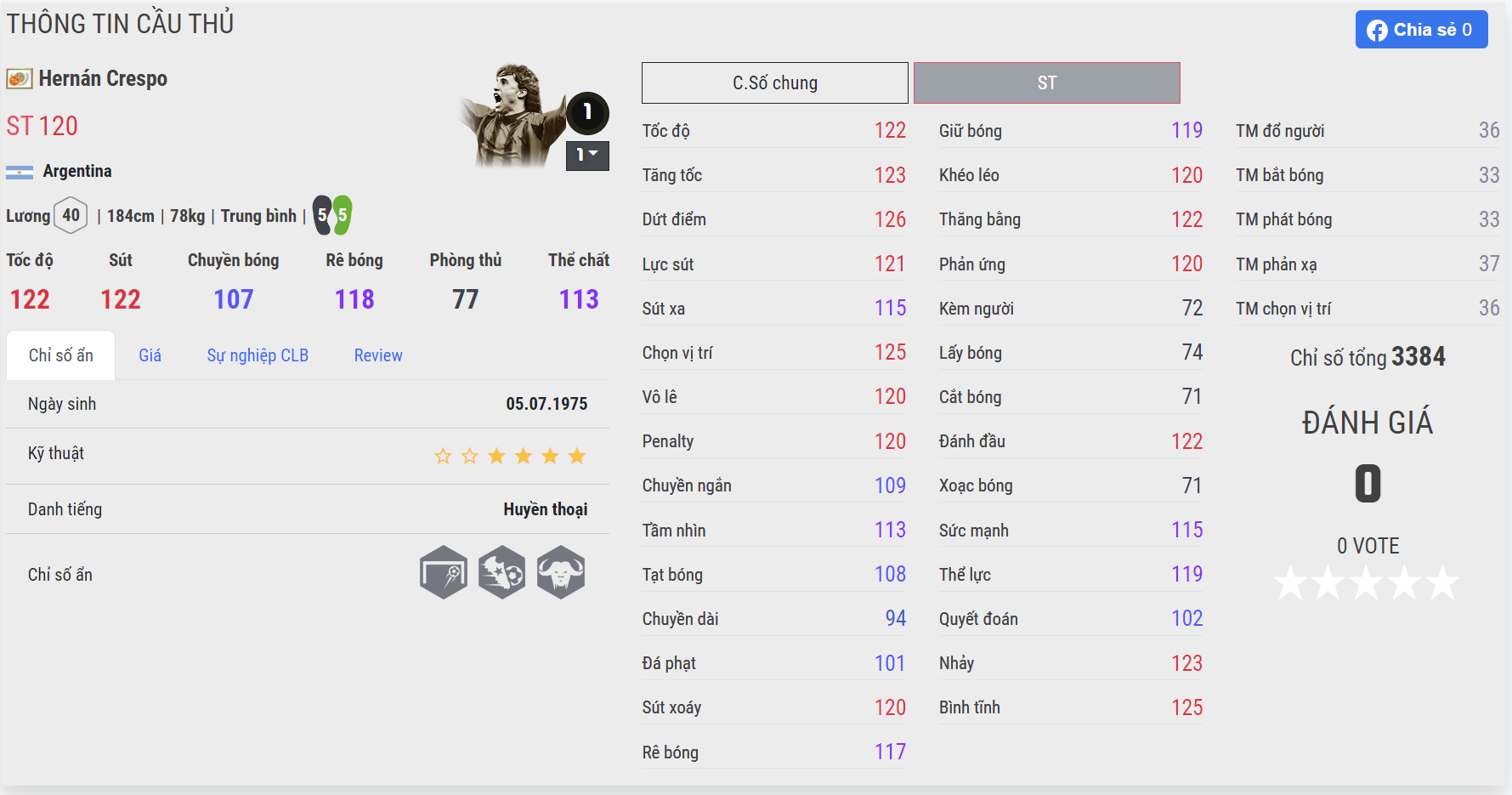 Crespo là cái tên tiếp theo được người chơi quan tâm, từng làm mưa làm gió một thời tại FO3, Crespo cũng được coi là mẫu tiền đạo tương đối toàn diện và điểm thọt duy nhất của anh chỉ là ở khả năng chuyền bóng có phần hạn chế.