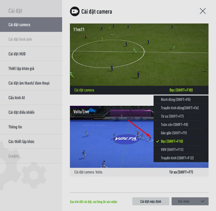 Lâu nay các bạn đa phần chơi FIFA Online 4 với góc nhìn ngang như khi chúng ta xem các trận bóng đá tường thuật trực tiếp trên tivi, điều này cho phép người chơi nhìn cầu thủ khá bao quát với một màn hình ngang. Tuy nhiên nếu bạn muốn đổi mới với góc nhìn từ trên cao, bao quát sân đặc biệt là nhìn các pha chạy chỗ của tiền đạo một cách trực quan thì hãy chọn góc nhìn flycam như sau.