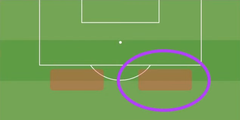 Đây là hai khu vực được nhắc đến trong cách dàn xếp lần này. Hơi chếch một chút so với hướng chính diện khung thành, và những quả phạt này thường có hàng rào. Lấy ví dụ là bạn được hưởng quả phạt ở hướng được khoanh tròn phía trên,