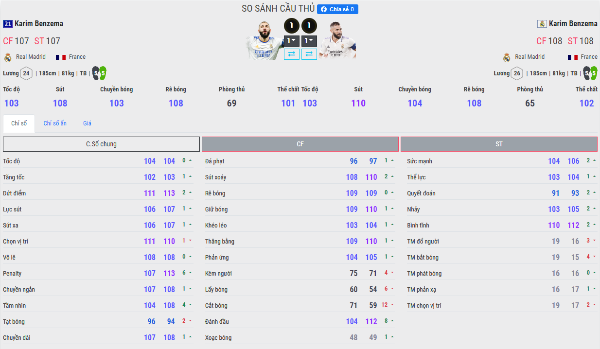 Xin nhắc lại là hai mùa này có các chỉ số về thể chất, thể hình và kỹ thuật là tương đương nhau. Chỉ khác nhau 1 điểm Ovr nhưng lại chênh tới 2 lương.