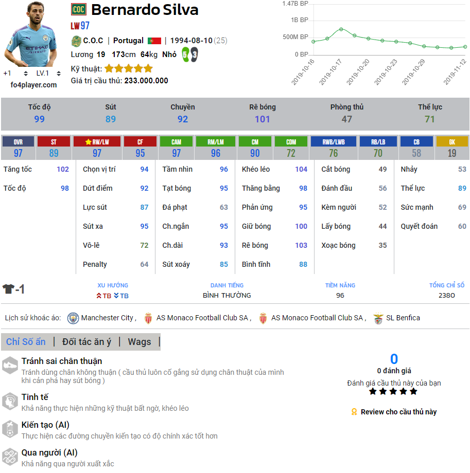 Bernardo Silva - Đánh giá trong game