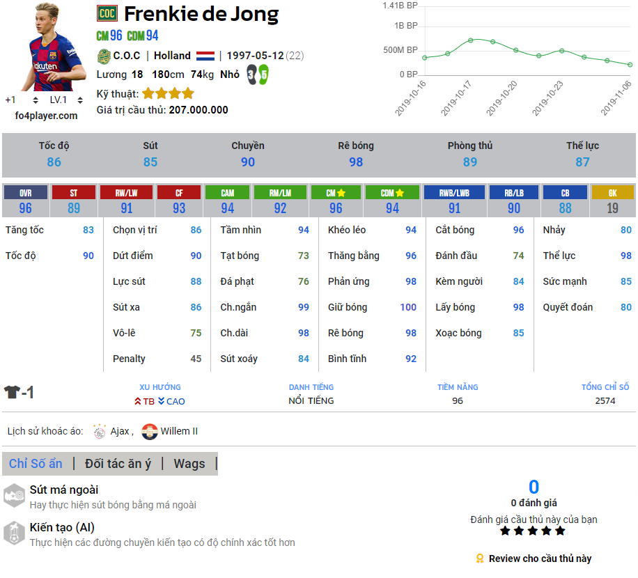 Hôm nay, hãy cùng FO4VN.COM tìm hiểu về De Jong mùa giải COC để xem anh thể hiện trong game ra sao nhé.