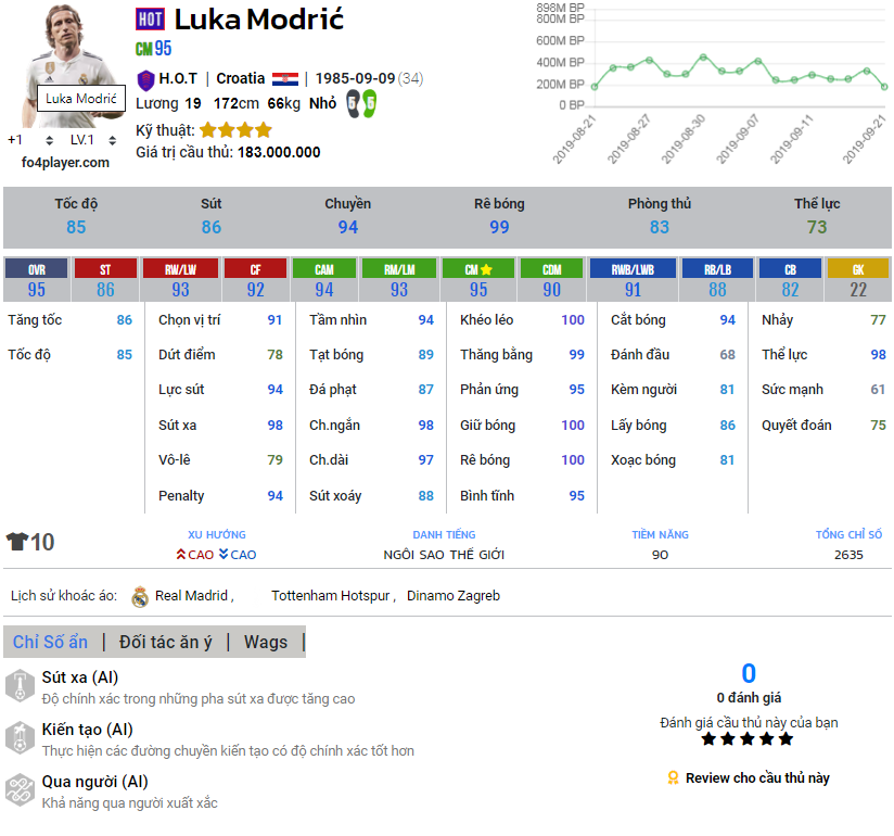Chỉ số của Modric | Nguồn : FO4PLAYER.COMHôm nay, hãy cùng FO4VN.COM tìm hiểu về Modric mùa giải HOT và xem anh thể hiện trong game thế nào nhé !