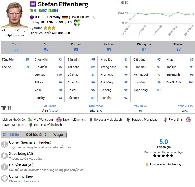 Chỉ số của Effenberg | Nguồn : FO4PLAYER.COMS.Effenberg - Đánh giá trong game
