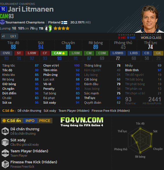 J.Litmanen - Đánh giá trong game
