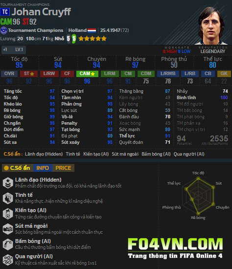 Mùa giải TC ra mắt tạo cơ hội cho người chơi được sở hữu và sử dụng Cruyff và sử dụng huyền thoại này .Vậy Cruyff mùa TC có gì đặc biệt? Hãy cùng FO4VN.COM tìm hiểu ở bài viết dưới đây