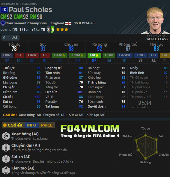 Scholes ở mùa giải TC là quãng thời gian anh giành tới 2 chức vô địch C1 trong 2 năm 1999 và 2008. Vậy Scholes TC thể hiện trong game ra sao? Hãy cùng FO4VN.COM tìm hiểu ở bài viết dưới đây.