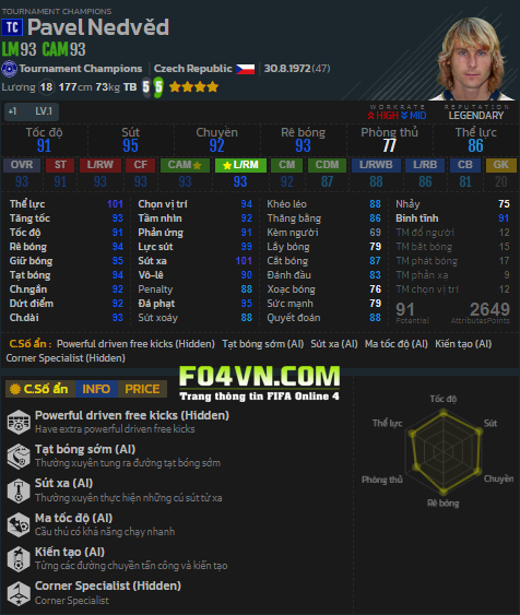 - Lương : Lương của Nedved là khá cao. Điều này khiến người chơi phải giảm lương ở vị trí khác để cân bằng mức lương toàn độ.