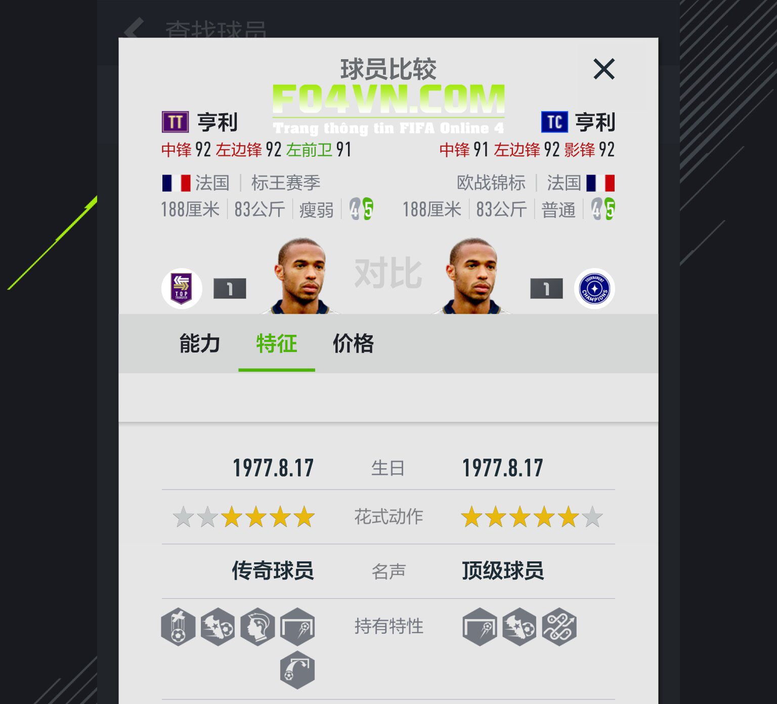 Ở mùa giải TC, Henry không còn chỉ số ẩn kiến tạo, bấm bóng và tinh tế. Thay vào đó là Henry có cho mình chỉ số ẩn Qua người và đặc biệt hơn cả là anh có tới 5 sao kỹ thuật thay vì 4 sao kỹ thuật như ở mùa TT.