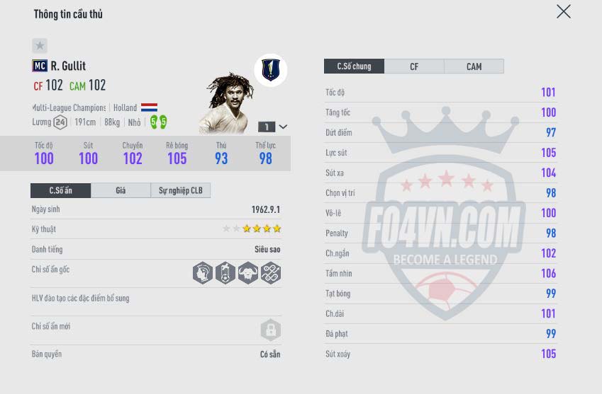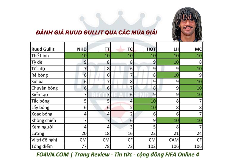Có thể thấy Gullit không có nhiều mùa giải cho đến hiện tại. Khi mà mùa giải MC của anh đang là mùa giải mới nhất. Và có mức lương gần như ngang với các ICON trong game. Chúng ta sẽ đi vào chi tiết