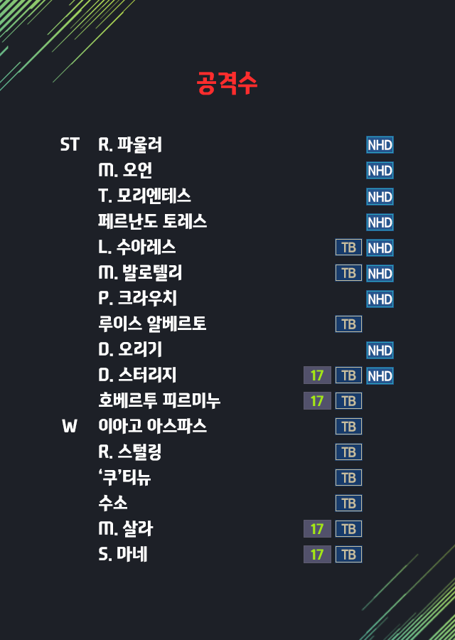 Tiền đạo ST R.Fowler M.Owen F.Morientes Fernando Torres L.Suarez M.Balotelli P.Crouch Luis Alberto D.Origi D.Sturridge Roberto Firmino LW,RW Iago Aspas R.Sterling Coutinho Suso M.Salah S.Mane