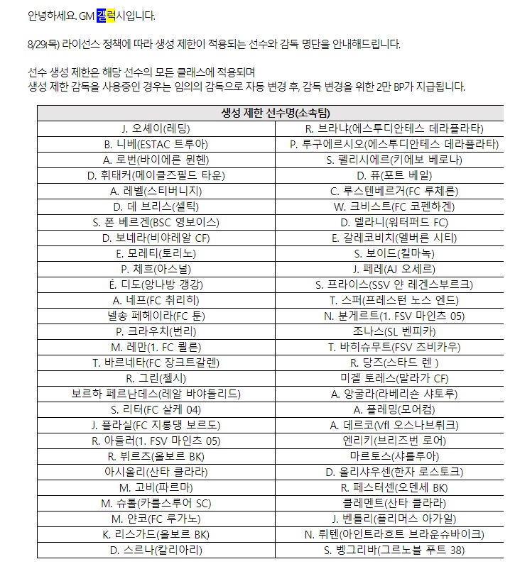 Ngày 29/8 (Thứ 5) sắp tới, FIFA Online 4 tiến hành bảo trì, cập nhật và thay đổi một số hạng mục. Ngoài việc cập nhật mùa giải HOT thì FIFA Online 4 Hàn Quốc cũng cập nhật luôn danh sách hạn chế mới cho FIFA Online 4.
