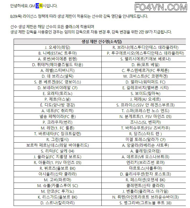 Tiếp tục danh sách những cầu thủ bị đưa vào danh sách giới hạn. Hôm nay FO4VN.COM tiếp tục đưa đến phần 2 với những cầu thủ còn lại đã bị đưa vào danh sách giới hạn của FIFA Online 4.
