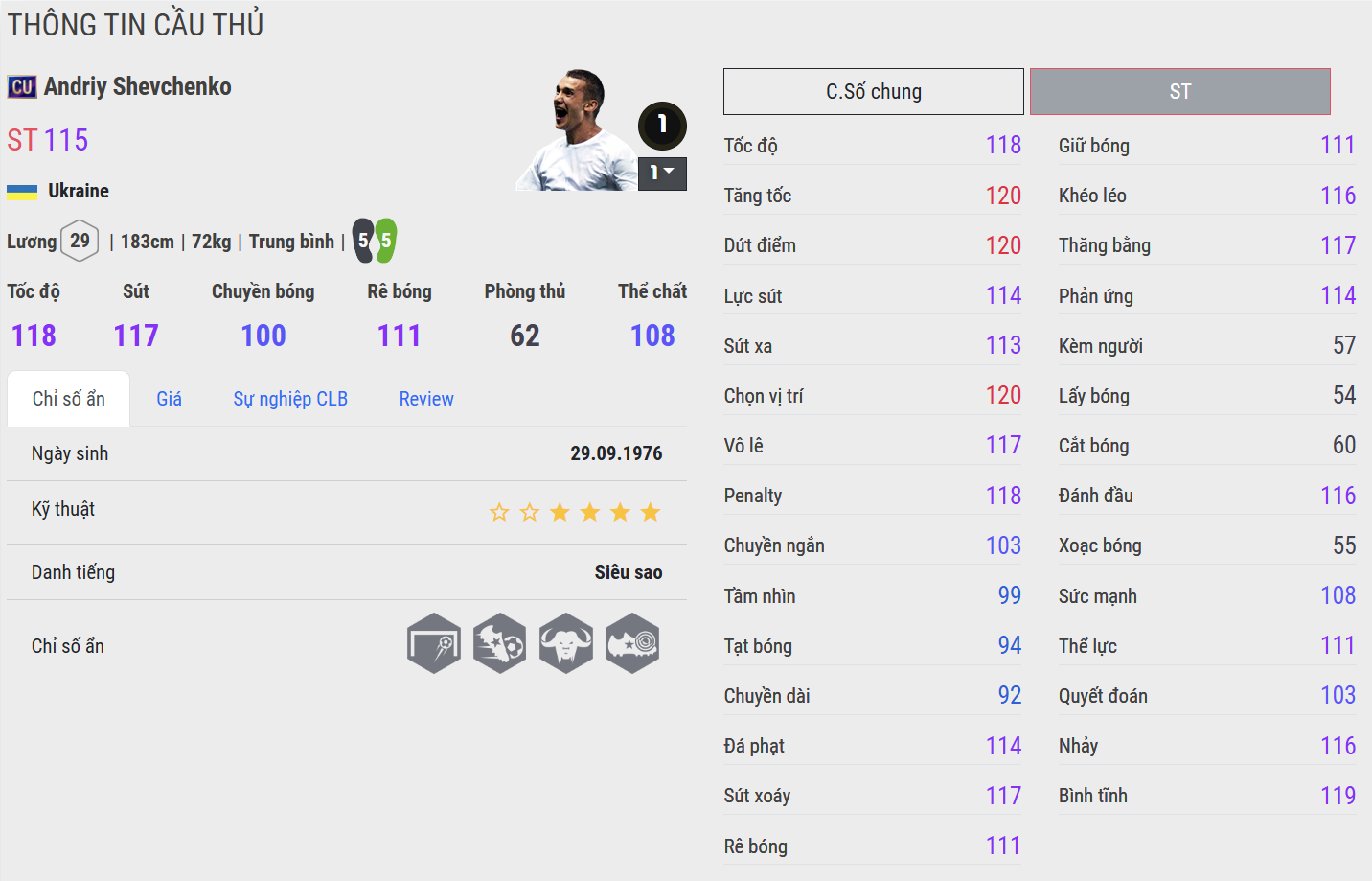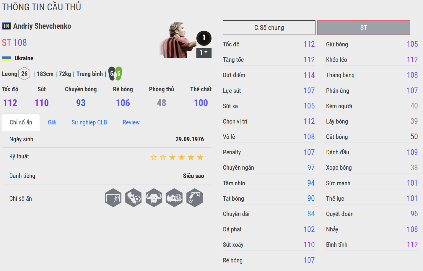 Trong FC Online, Shevchenko được đánh giá rất cao khi là mẫu tiền đạo toàn diện, đem lại hiệu quả thi đấu ấn tượng trong FC Online. Không những vậy, việc sở hữu hai team color hàng đầu là Chelsea và AC Milan cũng giúp Sheva được tin dùng nhiều hơn.