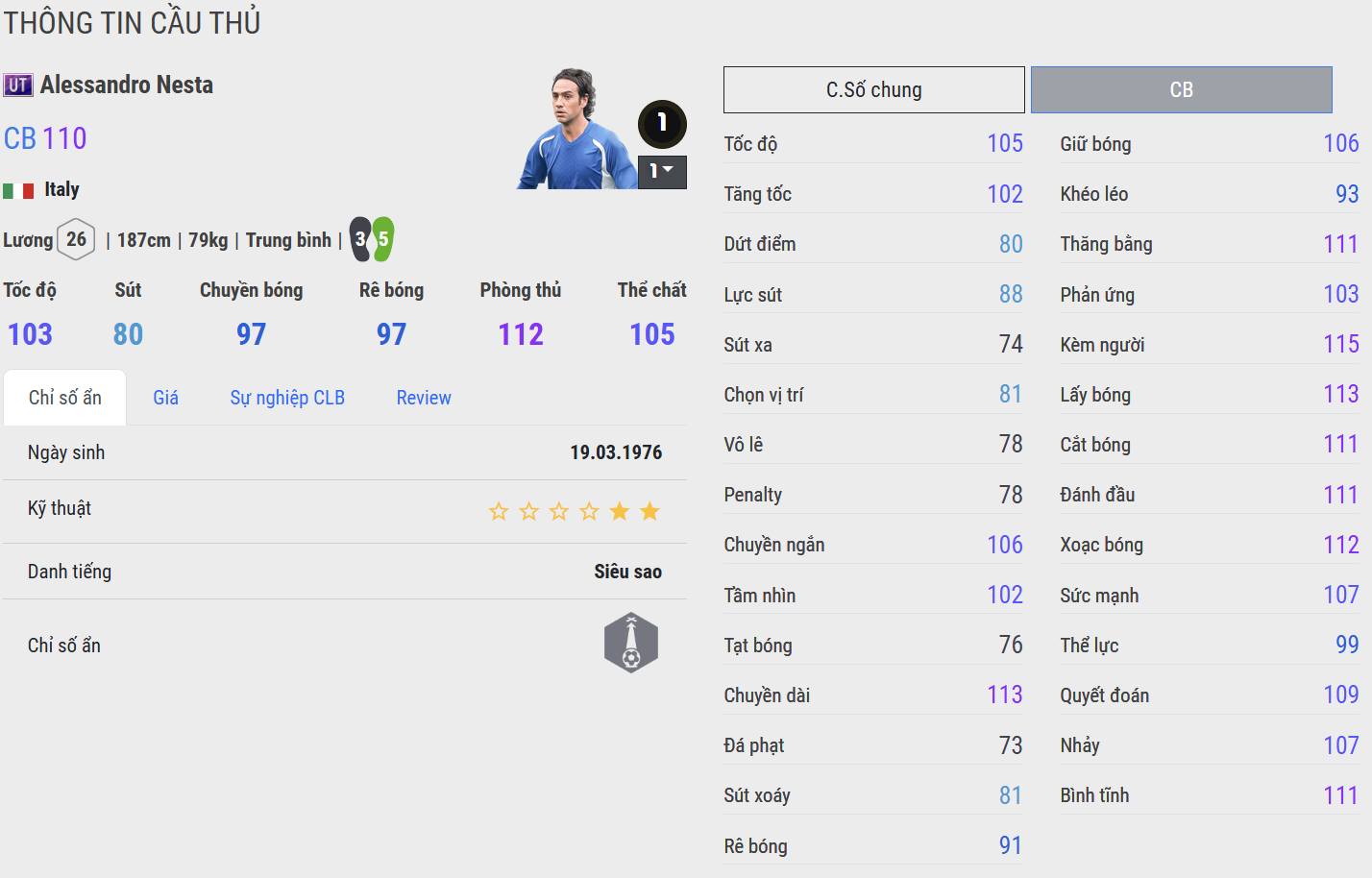 Sinh ra tại Rome, trưởng thành trong màu áo Lazio và vươn đến đỉnh cao cùng AC Milan, Nesta là hiện thân hoàn hảo của trường phái phòng ngự kiểu Ý – điềm tĩnh, thông minh và đậm chất kỹ thuật.