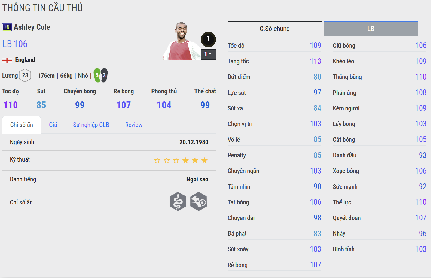 Ashley Cole là một trong những hậu vệ cánh trái xuất sắc nhất lịch sử bóng đá Anh. Nổi bật với tốc độ, khả năng đọc tình huống và kỹ năng phòng ngự 1vs1 xuất sắc, anh từng là trụ cột không thể thay thế tại Arsenal và Chelsea.
