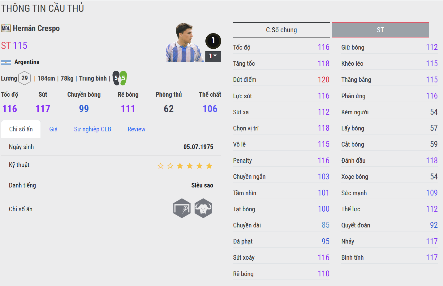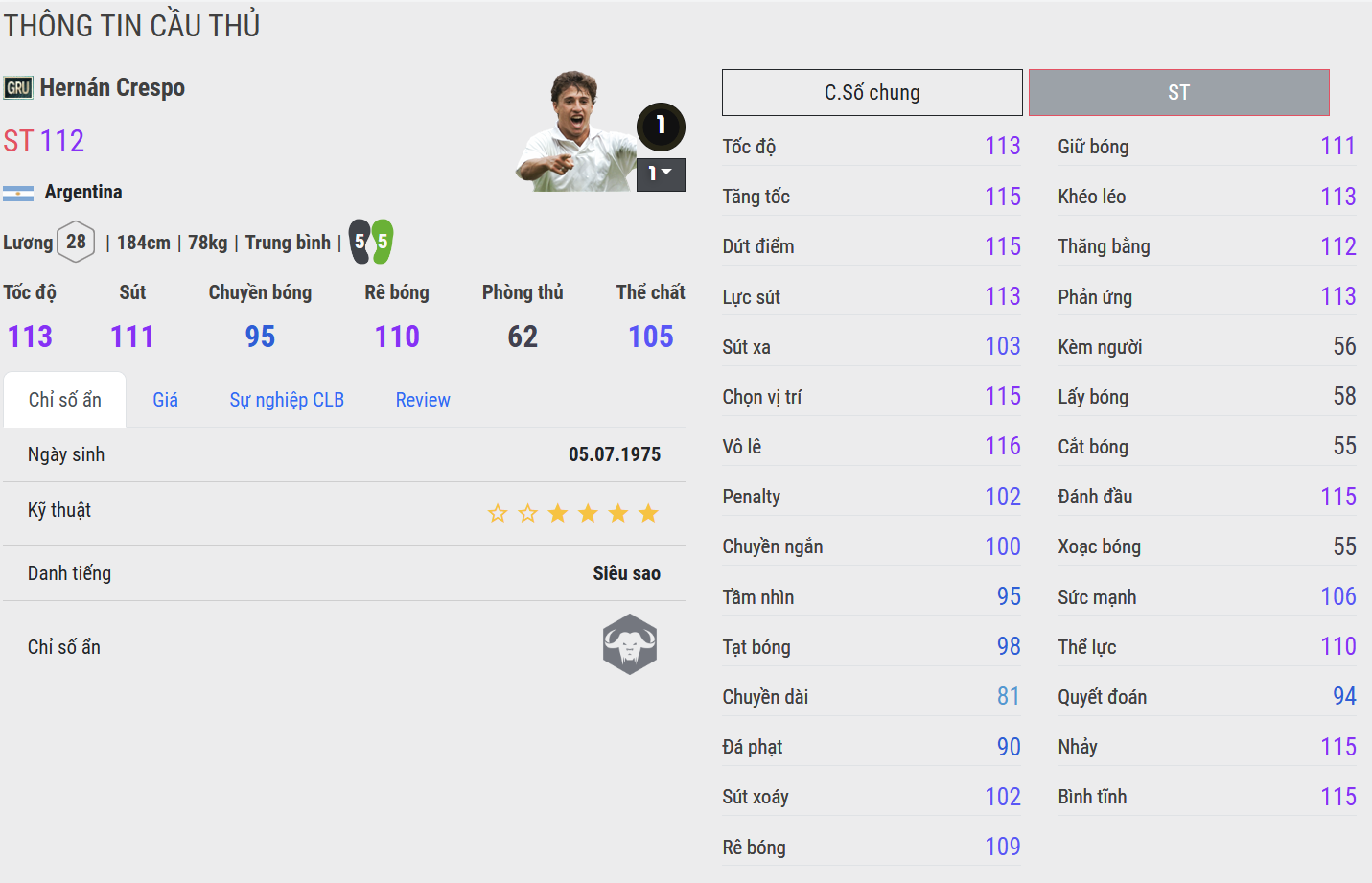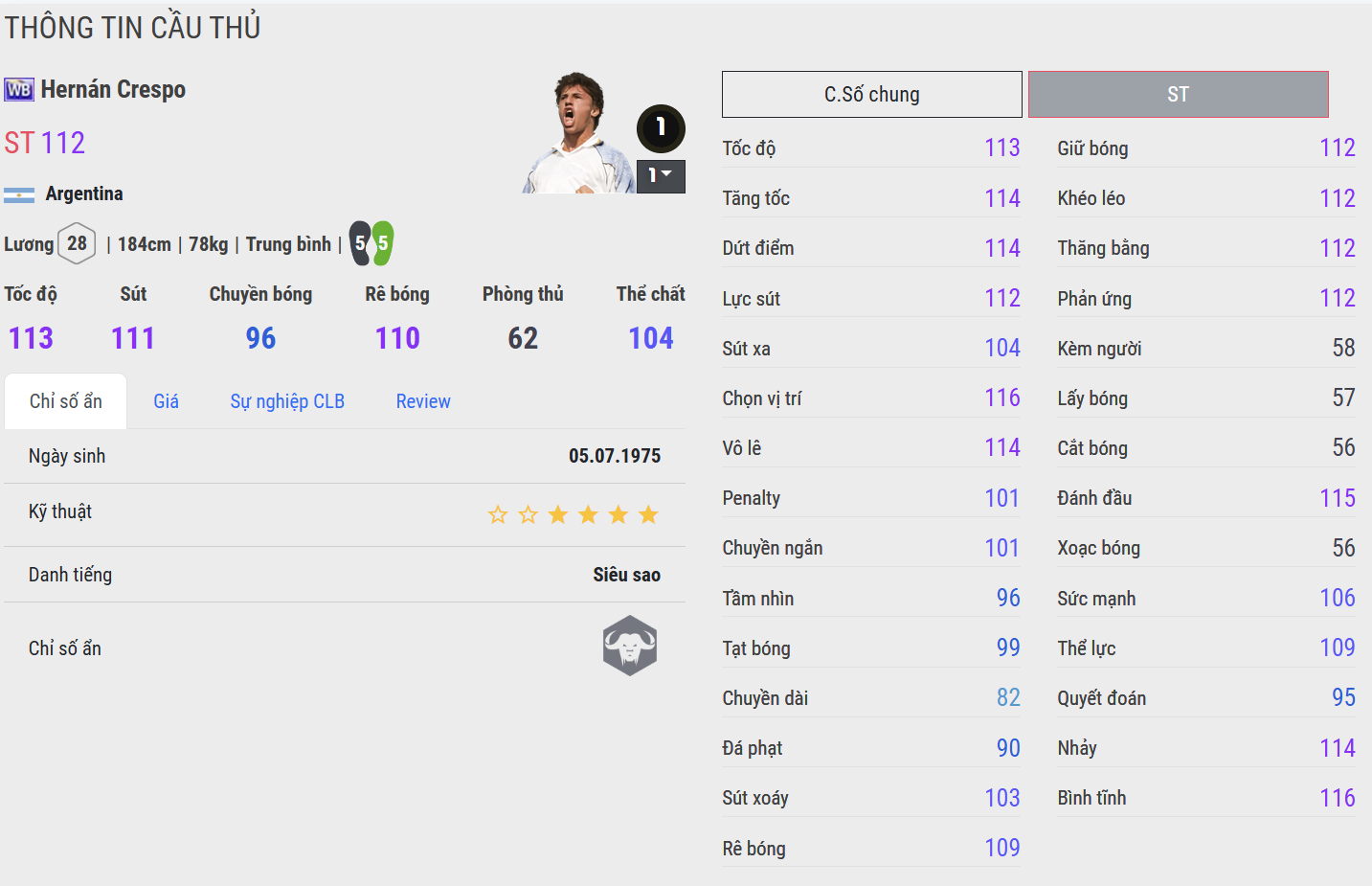 Trong FC Online, Crespo là lựa chọn lý tưởng cho những HLV yêu thích mẫu trung phong cổ điển – người biết tận dụng từng cơ hội, mang lại sự ổn định và sắc bén ở tuyến đầu hàng công.