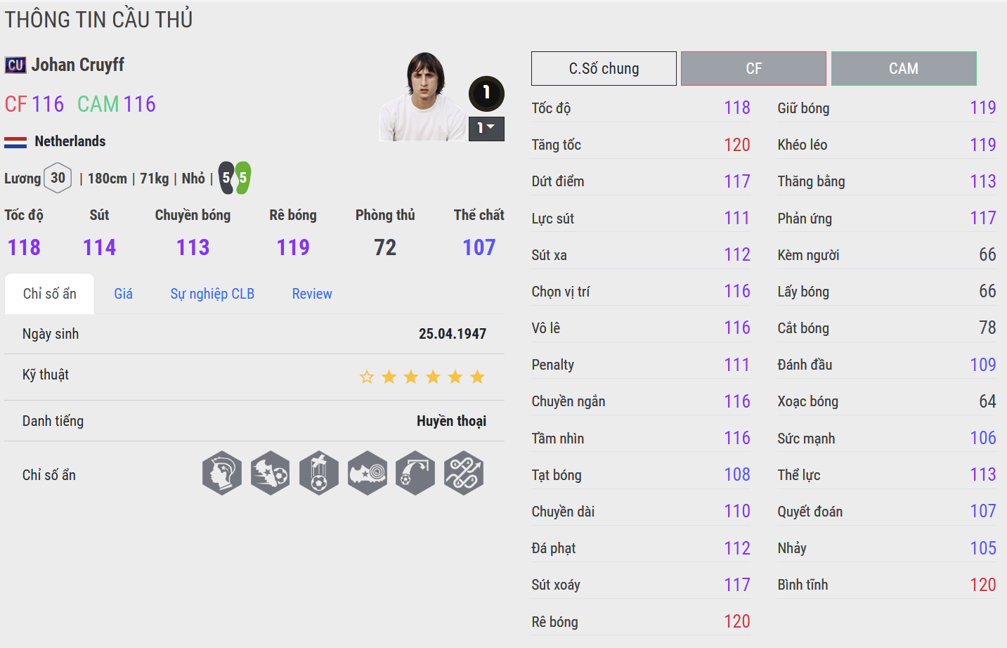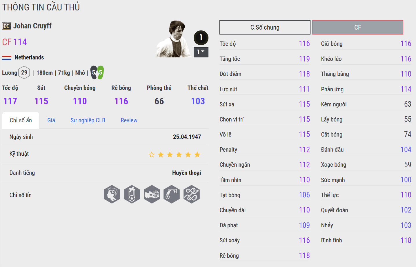 Cruyff sở hữu lối chơi thanh thoát, nhãn quan chiến thuật siêu việt và những pha xử lý bóng đậm chất nghệ sĩ, nổi tiếng nhất với động tác xoay người “Cruyff Turn” trứ danh. Trong màu áo tuyển Hà Lan, ông dẫn dắt “Cơn lốc màu da cam” tới trận chung kết World Cup 1974 và trở thành biểu tượng của bóng đá tấn công. Không chỉ là một cầu thủ vĩ đại, Johan Cruyff còn là nhà cách mạng đích thực – người đã thay đổi bộ mặt của Barcelona và ảnh hưởng sâu sắc tới triết lý tiki-taka sau này. Di sản ông để lại chính là minh chứng hùng hồn rằng bóng đá, trên hết, là một môn nghệ thuật.