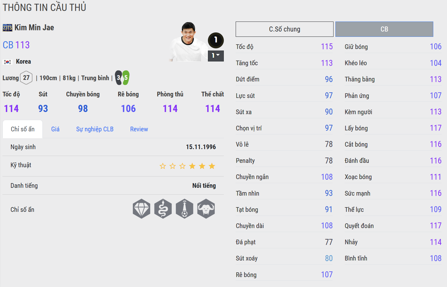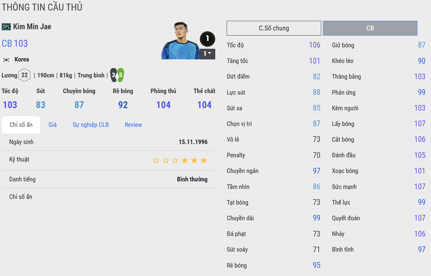 Từng được xem là mùa thẻ trung vệ quốc dân 1 thời, Kim Min Jae cho thấy hiệu quả phòng ngự ấn tượng từ tốc độ, kỹ năng cắt bóng, khả năng tranh chấp lẫn không chiến. Ngoài ra, kỹ năng phát động tấn công bằng chuyền dài xuyên tuyến của Kim Min Jae cũng được đánh giá tốt.
