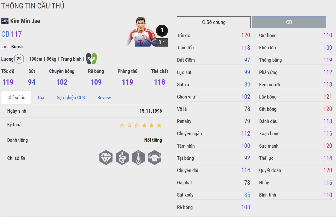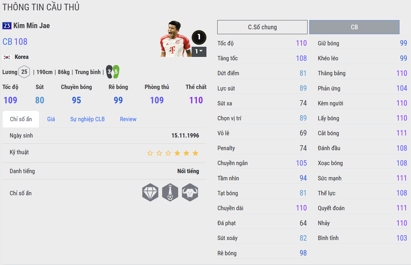 Mức giá rẻ, dễ tiếp cận ở mùa thẻ +8 cùng khả năng thi đấu hiệu quả giúp cho Kim Min Jae được tin dùng rất nhiều ở phiên bản này. Thể hình to cao, khả năng tranh chấp tốt cùng kỹ năng phòng ngự hiệu quả.