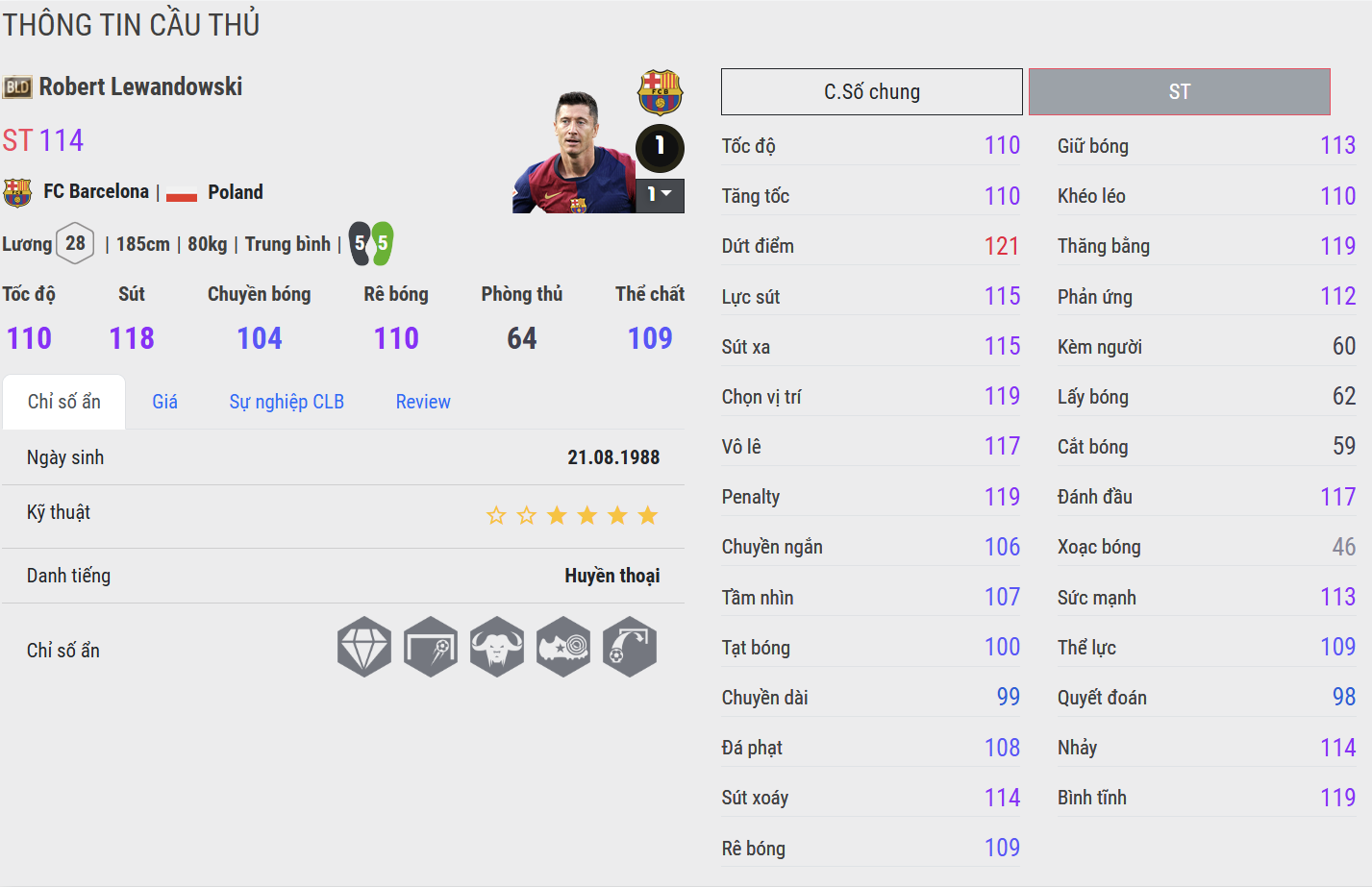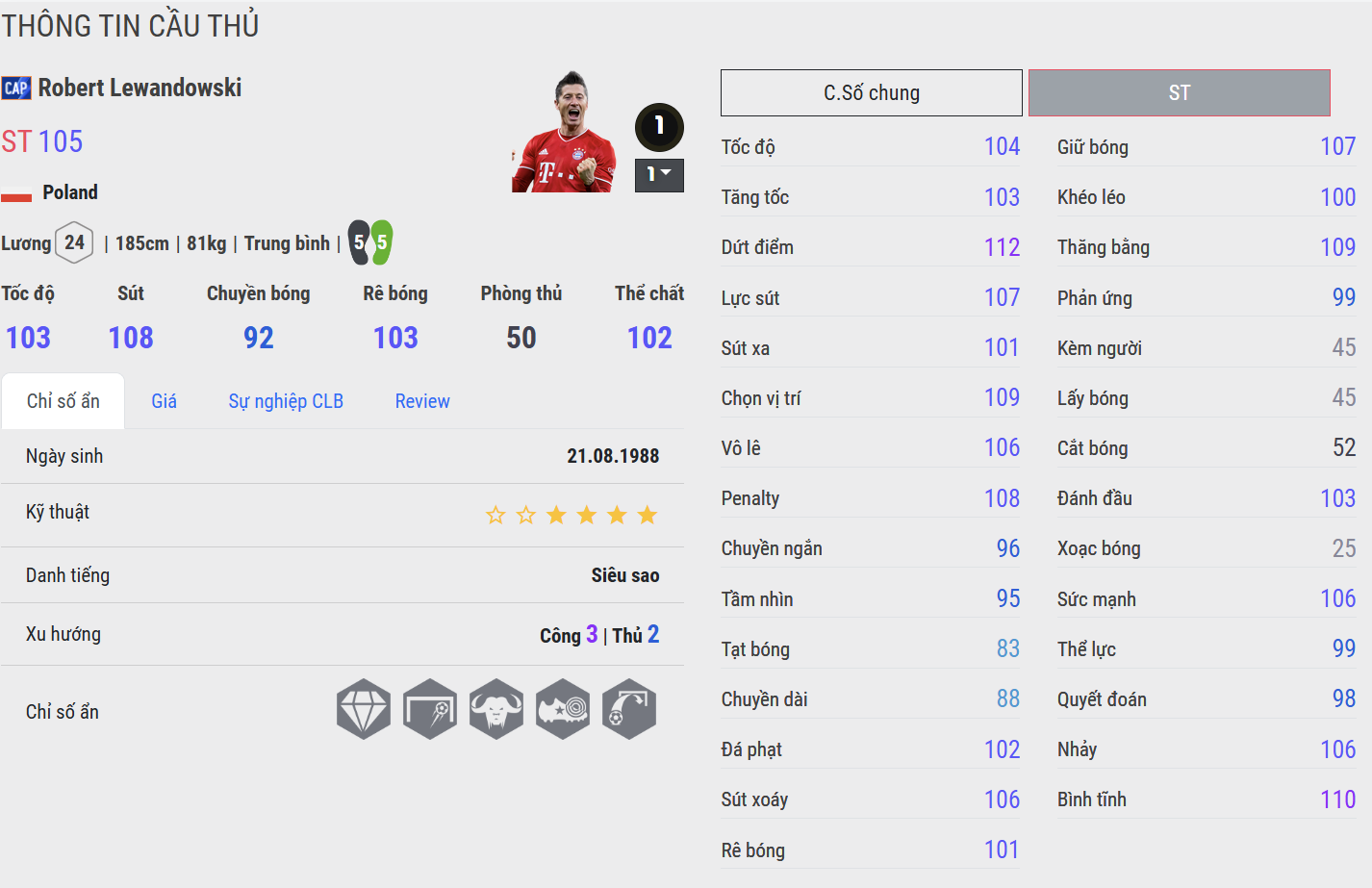 Robert Lewandowski được xem là một trong những tiền đạo quốc dân toàn diện bậc nhất FC Online. Anh là mẫu tiền đạo số 9 có thể thực hiện tốt từ khả năng dứt điểm, không chiến, làm tường kiến tạo cho đến sút xa nổi bật.