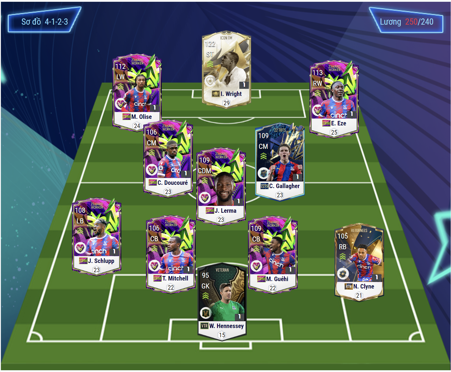 Với việc ra mắt mùa giải HW, Crystal Palace đã bổ sung nhiều cầu thủ đương đại chất lượng trên mọi tuyến thi đấu. Và không thể phủ nhận CLB nước Anh đã thay một chiếc áo mới với một sự chất lượng vượt trội. Giờ đây Crystal Palace không còn ngại va chạm với các CLB khác trong game nữa.