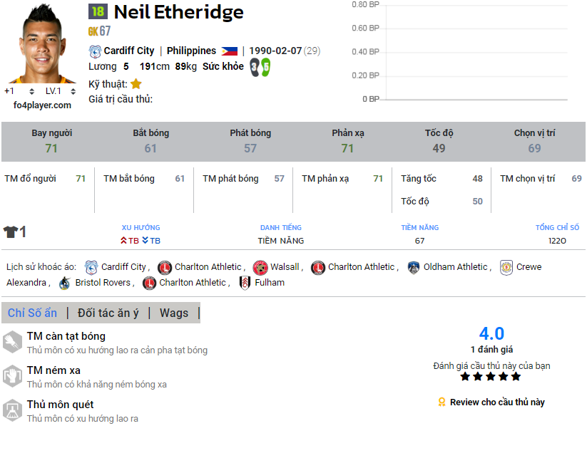 Thủ môn Etheridge có lẽ là điểm yếu duy nhất khi anh có đủ những kỹ năng phòng ngự nhưng lại không có điểm quá nổi bật nào.