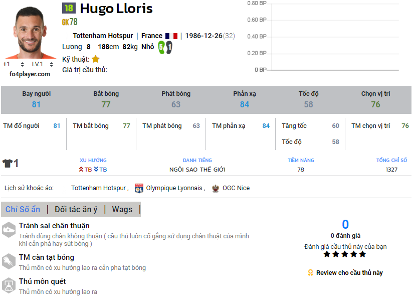 Thủ môn Lloris là một trong những cầu thủ có khả năng bắt sút xa cực tốt. Ngoài ra khả năng phản xạ của anh cũng là hay và AI cũng là rất thông minh