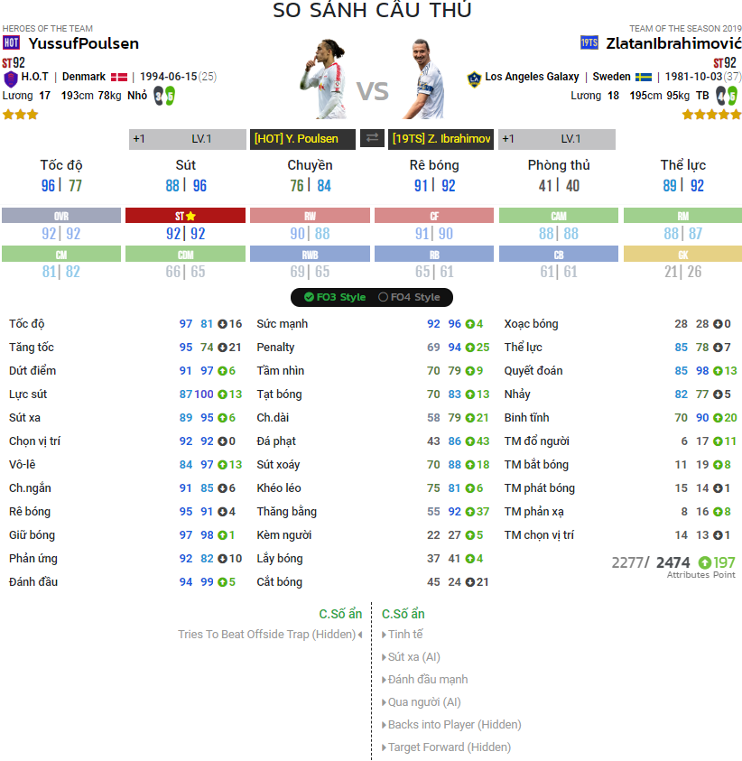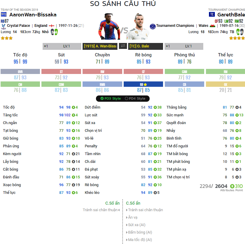 Đội hình này khá mạng ở tất cả các tuyến. Tiền đạo là sự góp mặt của Ibrahimovic và Poulsen. Trong khi đó 2 tiền vệ cánh được đặt cho 2 quái vật hành lang cánh Bale và Wan-Bissaka. 2 cầu thủ này đều có tốc độ cực tốt, thể hình ổn và khả năng lên xuống liên tục và hỗ trợ tấn công 2 bên hành lang cực kì hay.