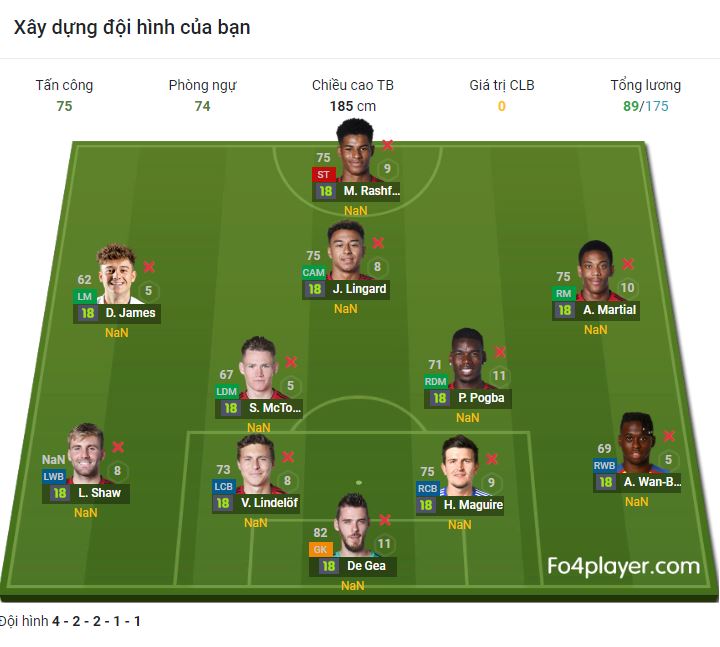 Nhiều khả năng sẽ sử dụng sơ đồ 4-2-3-1 với bộ đôi tiền vệ trung tâm McTominay và Paul Pogba trong khi vị trí số 10 được trao cho Jesse Lingard. Ở phía trên, bộ ba tấn công của M.U sẽ là Rashford, Martial và James.