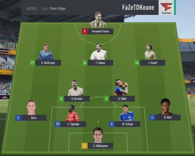 FazeTDKeane hiện đang đứng top 1 sever Thái Lan với một tỷ lệ thắng lên tới 90%. Tuyển thủ này chỉ sử dụng một sơ đồ là 4231 với 3 tiền vệ tấn công giàu sức sáng tạo. Tại giải đấu FECC 2021 đang diễn ra thì đây là đội hình mà anh chàng sử dụng