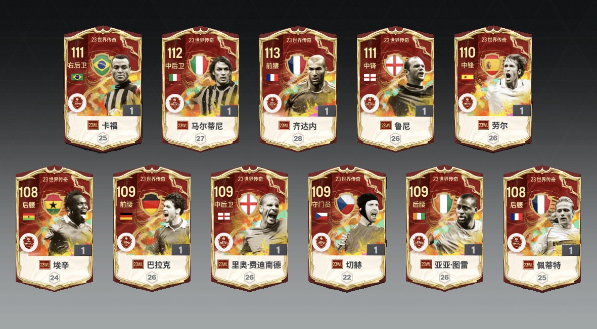 Danh sách mùa thẻ 23WL bao gồm 11 cái tên đều là huyền thoại của những CLB hàng đầu và đang được nhiều game thủ Trung Quốc chờ đón bao gồm :