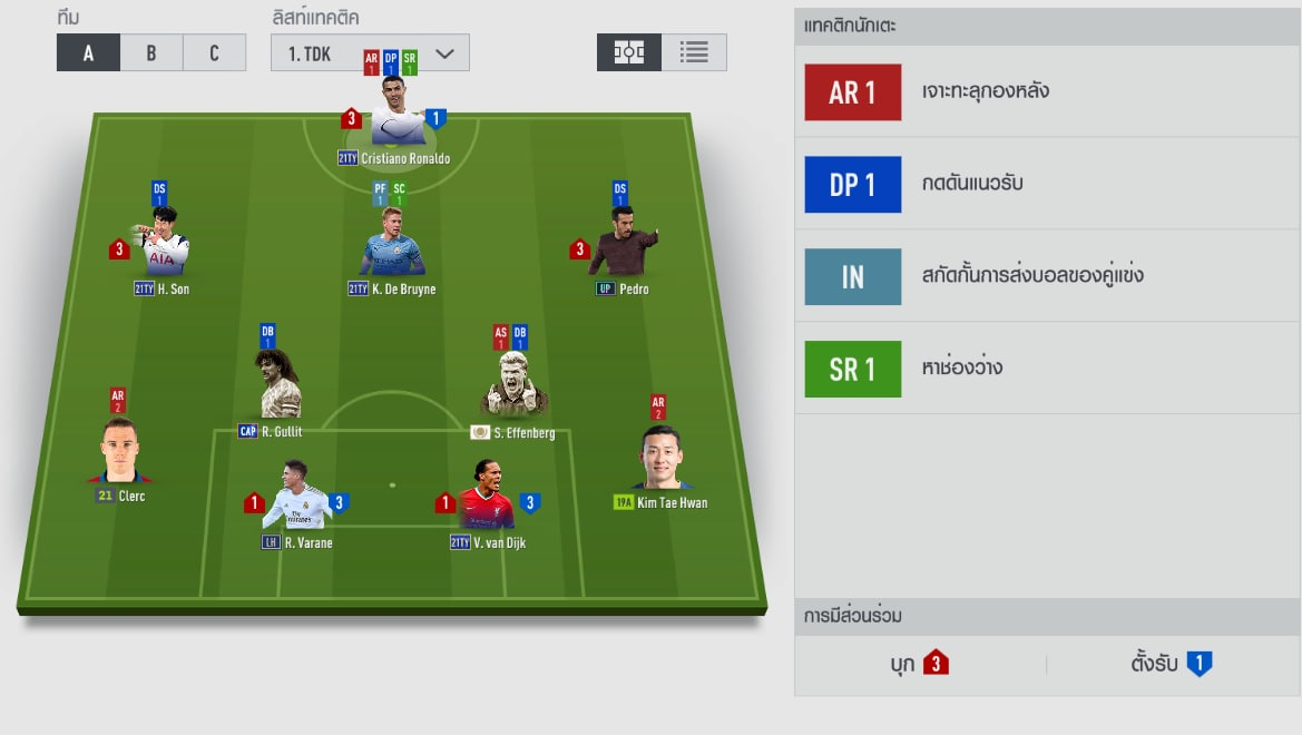 Lối chơi : tổ chức , tấn công : tự do, phòng thủ : tự do