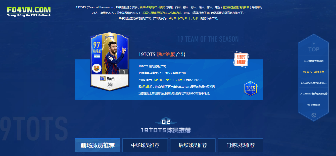 Thẻ mùa giải TOTS có bộ chỉ số cực kì cao và sánh ngang với mùa giải TOTY. Cũng vì lẽ này, phía Server Trung Quốc cũng đưa ra thông báo về việc thẻ mùa giải này sẽ chỉ ra mắt trong vòng hơn 1 tháng và sau đó cũng sẽ được đưa vào giới hạn giống thẻ TOTY.