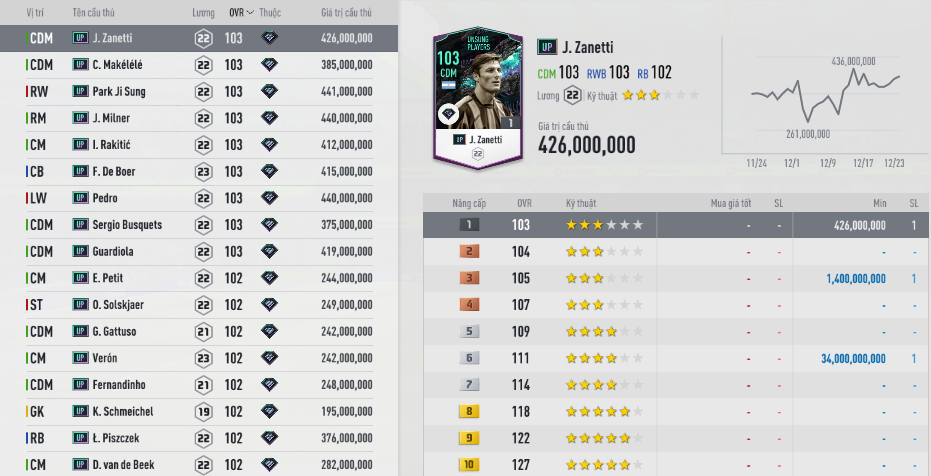 Đây là những thẻ chính, còn lại là những lần cập nhật thêm mùa NTG, ICON và thẻ huyền thoại Việt Nam
