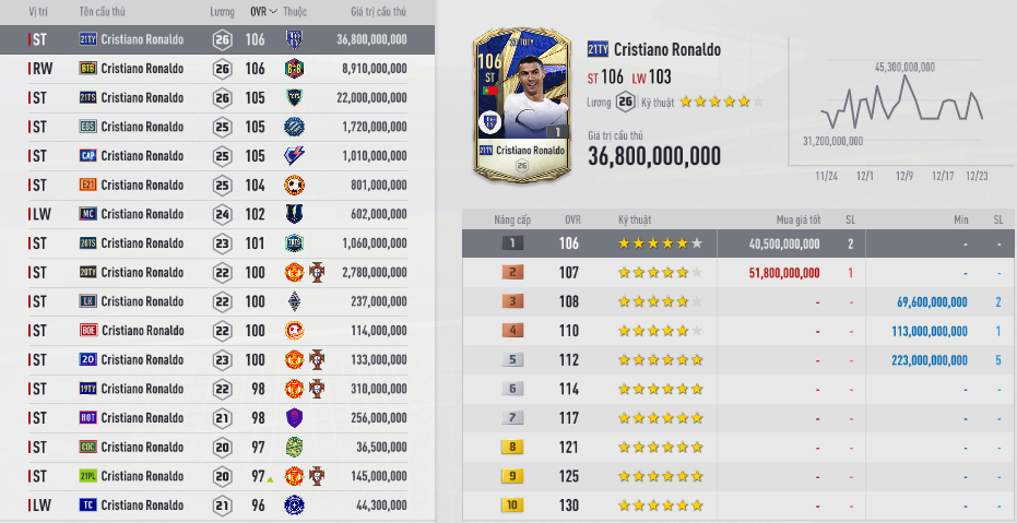 Ronaldo có quá nhiều mùa giải trong game